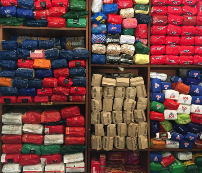 Hacemos un reparto de alimentos semanal, cada jueves de 17:00h a 19:00h, y atendemos a muchas familias necesitadas: una media de 78 familias (180 personas) al mes.